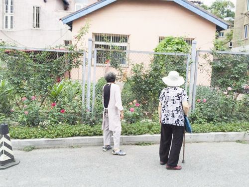 鄰居在觀賞李老太種的花